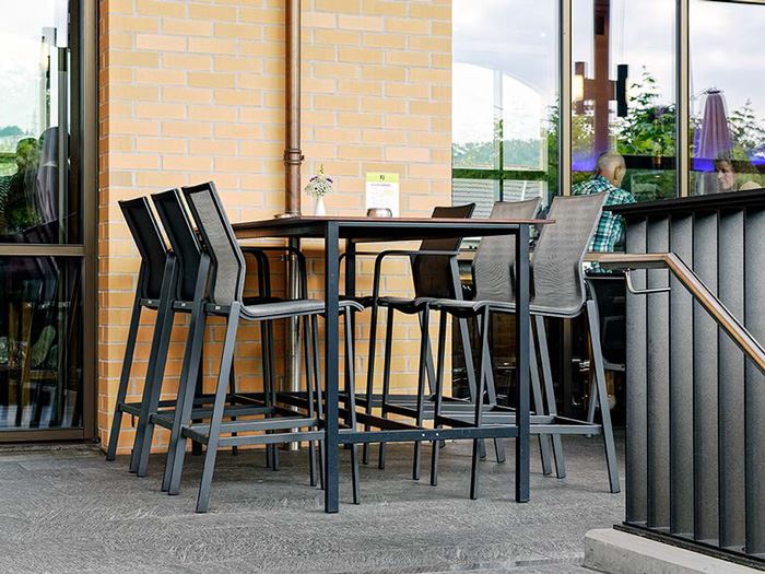 - Taille et flexibilité : Les tables doivent non seulement s'adapter à l'espace extérieur, mais également être disposées de manière flexible. Faites attention à combiner des tables carrées et rectangulaires avec des plateaux de même largeur, par exemple 80x80 cm et 120x80 cm.
