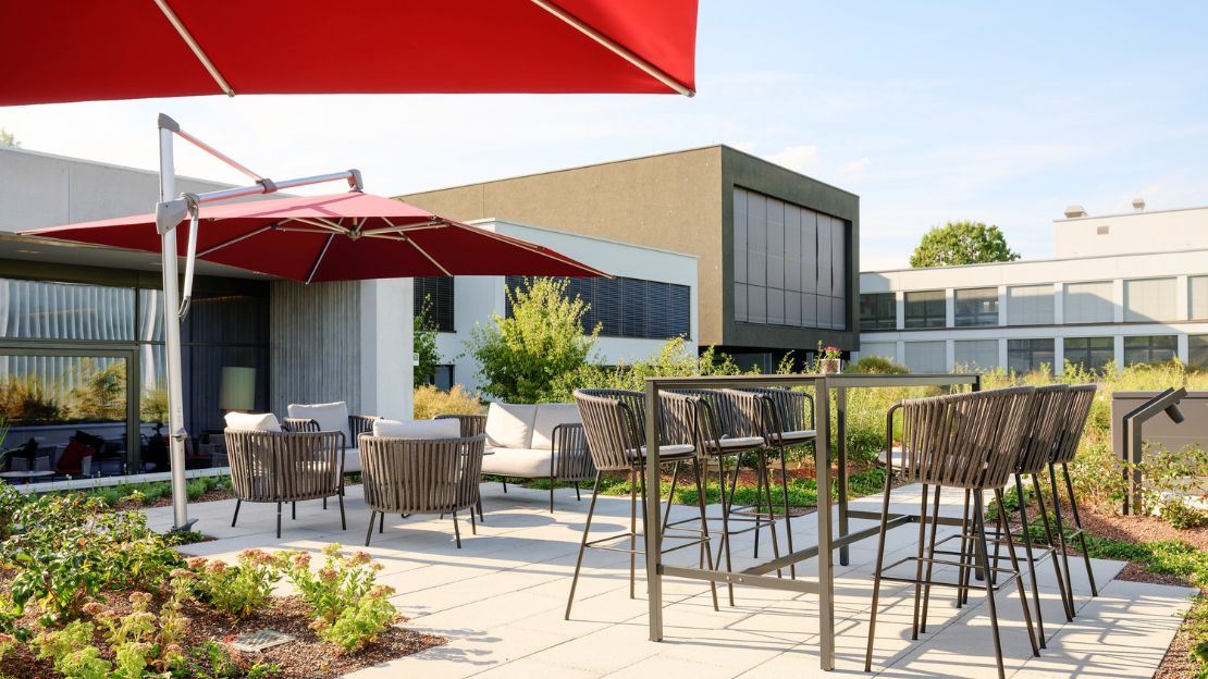 Avec 67 salles de conférence et de séminaire avec vue sur la verdure et une infrastructure technique ultramoderne, vous trouverez au Campus Sursee l'offre parfaite pour vos séminaires et événements. Le magnifique espace extérieur a été équipé par Hunn avec la ligne moderne GRANADA. Les fauteuils de bar, les tables de bar et les lounges en rope assurent un grand confort d'assise et confèrent beaucoup de charme à la terrasse.