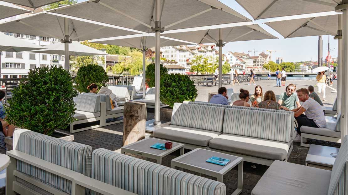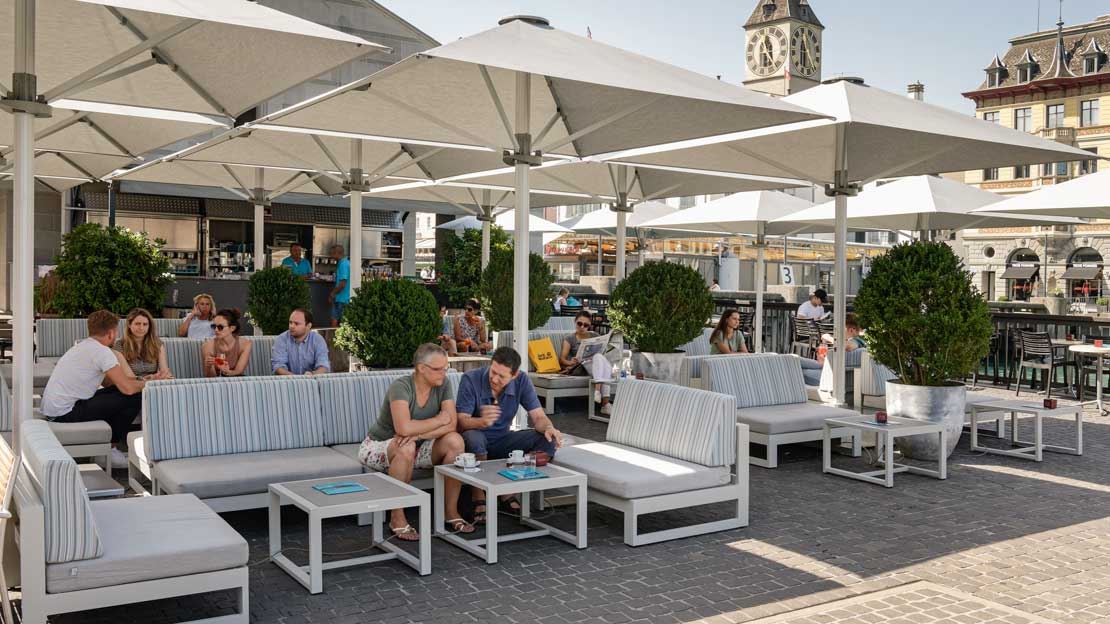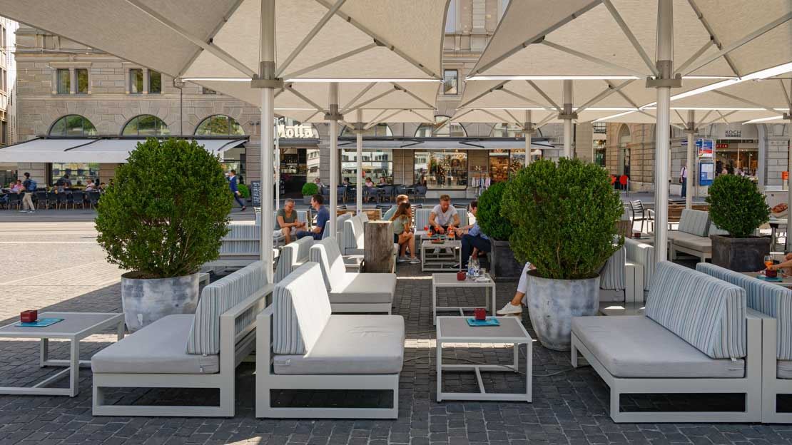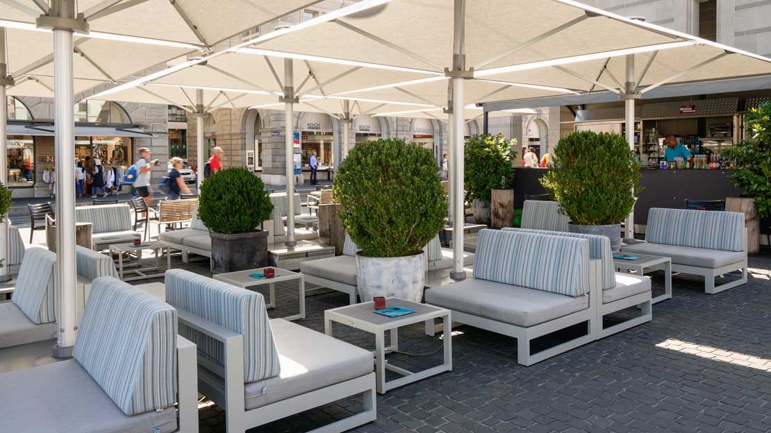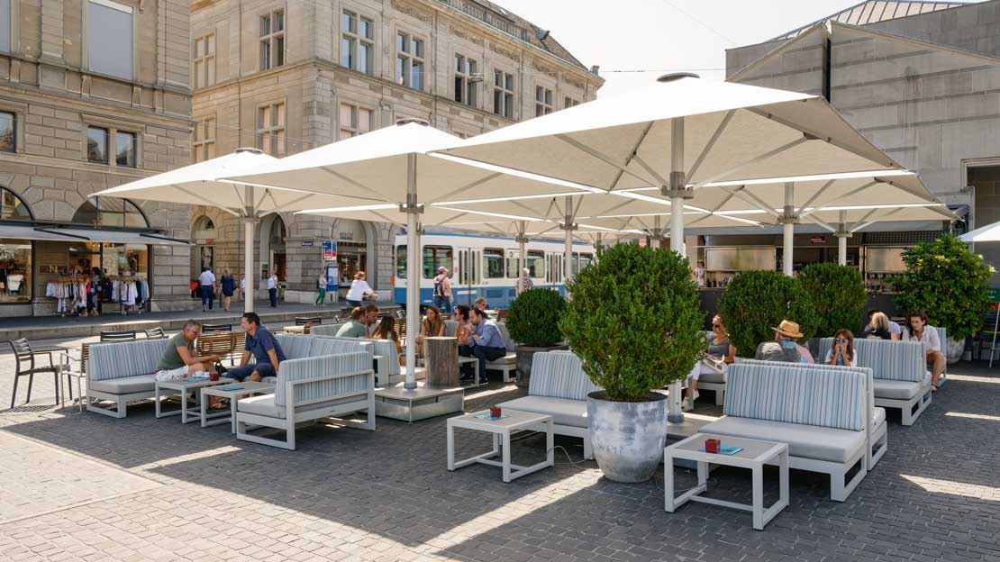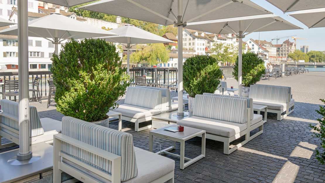 Le Café de l’Hôtel de Ville de Zurich est synonyme de plaisir élégant, d’élégance urbaine et d’un emplacement exceptionnel au cœur de la ville. L’espace extérieur, aménagé avec soin, invite les clients à profiter de moments de détente dans un cadre historique. Équipé du luxueux salon de jardin SAFIR, des élégantes tables d’appoint RUBIN ainsi que de parasols GLATZ de haute qualité, il crée une harmonie entre confort, design et fonctionnalité. Le mobilier soigneusement sélectionné génère une atmosphère accueillante, idéale pour des pauses gourmandes au cœur de Zurich.