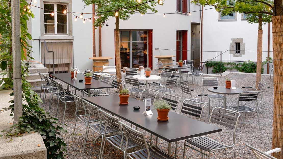 La Confiserie Speck à Zoug est synonyme d’artisanat sucré, de qualité supérieure et de moments gourmands dans un cadre exceptionnel. Le charmant espace extérieur invite les clients à savourer des spécialités de confiserie et des boissons café dans un environnement idyllique. Équipé de mobilier de jardin Schaffner de haute qualité, notamment les élégantes tables de jardin SÄNTIS et les chaises assorties, il crée une harmonie entre tradition, confort et design intemporel. L’ameublement élégant s’intègre parfaitement dans le cadre et garantit une expérience extérieure accueillante.