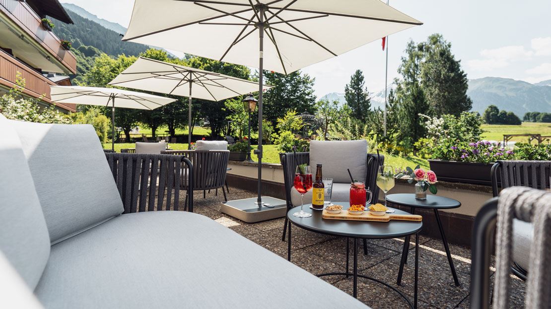 Depuis la mise en place du nouveau mobilier, notre terrasse a gagné en attractivité. L’espace lounge est devenu un lieu apprécié de nos hôtes pour se détendre et profiter du cadre. À tel point que la presse locale nous a désignés comme disposant de la «plus belle terrasse de Klosters».
