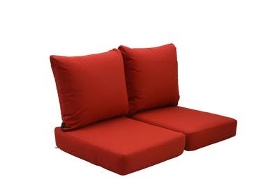 Tresse rembourée gris foncé, coussins de lounge Solids rouge inclus