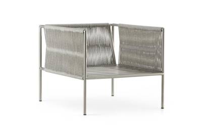 Fauteuil lounge acier inoxydable Corde synthétique tressée gris clair, coussins de lounge Quadro taupe inclus, version Soft-QuickDry, avec accoudoirs