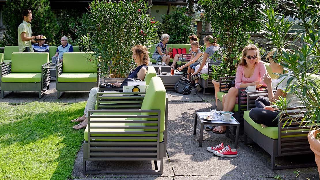 Gartenbänke bieten viel Platz für grössere Gruppen. Sie eignen sich für hoch frequentierte Restaurants mit Stosszeiten. In puncto Ausnutzung der Sitzfläche pro Quadratmeter haben Sie dadurch eine optimale Lösung.