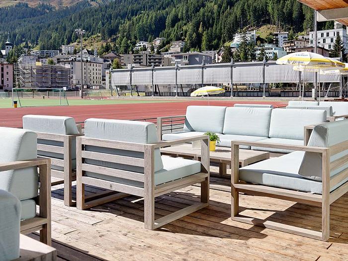 - Richten Sie mehrere kleinere Loungegruppen ein. Fremde Menschen gesellen sich nicht gerne, weshalb grössere, halb besetzte Lounges unnötig Sitzplätze blockieren. Bei Bedarf lassen sich modulare Loungemöbel kurzfristig zusammenschieben.