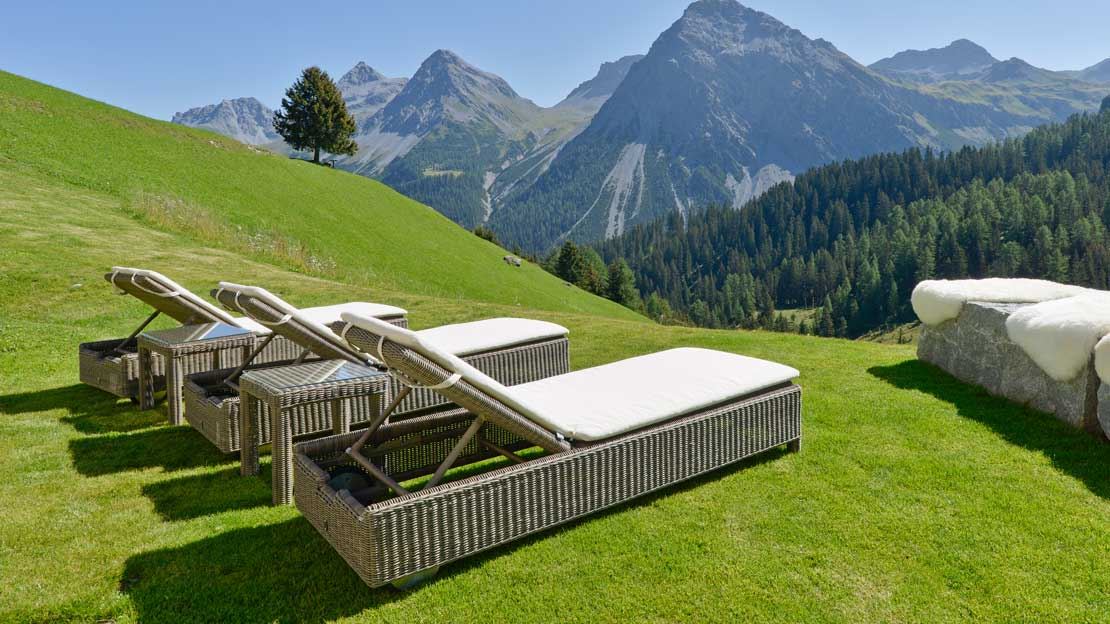 Das Arosa Kulm Hotel & Alpin Spa bietet seinen Gästen einen exklusiven Rückzugsort inmitten der beeindruckenden Bergwelt von Arosa. Hier verbinden sich Erholung, Natur und erstklassiger Komfort zu einem besonderen Aufenthaltserlebnis. Der stilvoll gestaltete Aussenbereich lädt dazu ein, die alpine Ruhe in vollen Zügen zu geniessen und neue Energie zu tanken. Ausgestattet mit hochwertigen Rattan-Gartenmöbeln, der komfortablen MAXIME Gartenliege sowie den eleganten ADRIATCO Loungeelementen entsteht ein harmonisches Ambiente aus Natürlichkeit und modernem Design. Perfekt für entspannte Momente mit Blick auf die alpine Pracht.