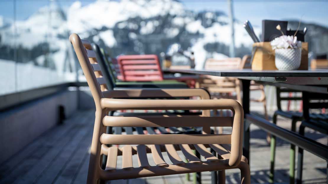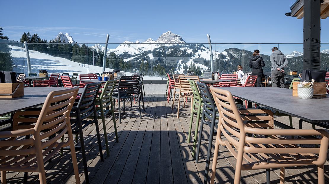 Erleben Sie alpines Outdoor-Flair in der Bergbahnen Destination Gstaad AG. Die farbenfrohen DOGA Gartenstühle in Kombination mit den langlebigen STOCKHOLM Gartentischen schaffen eine moderne und einladende Atmosphäre für entspannte Stunden auf der Terrasse. Ergänzt werden die Sitzbereiche durch praktische NET STOOL Barstühle und optisch abgestimmte SCHILTHORN Bartische, ideal für einen gemütlichen Apéro mit Blick auf die Alpen. Hochwertige Materialien, durchdachtes Design und hoher Komfort machen diese Outdoor-Möbel zur idealen Lösung für attraktive Aussenbereiche in alpiner Umgebung.