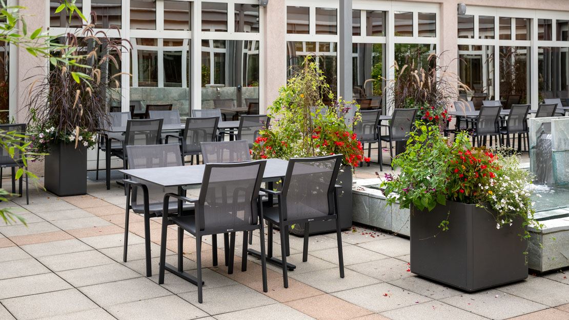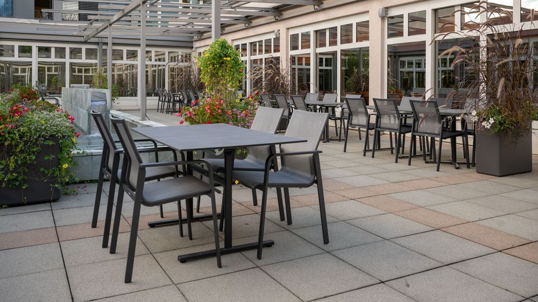 Das EMS Val Fleuri Lieu de vie in Genf ist ein Alters- und Pflegeheim, das seinen Bewohnerinnen und Bewohnern ein sicheres, herzliches und lebendiges Umfeld bietet. Die einladende Aussenterrasse lädt zum Verweilen, Austauschen und Geniessen ein. Ausgestattet wurde sie mit komfortablen PORTO Gartenstühlen sowie den klappbaren STOCKHOLM Gartentischen. Diese hochwertigen und funktionalen Gartenmöbel vereinen Stabilität, Flexibilität und Komfort. Ideal für den täglichen Einsatz im Aussenbereich.