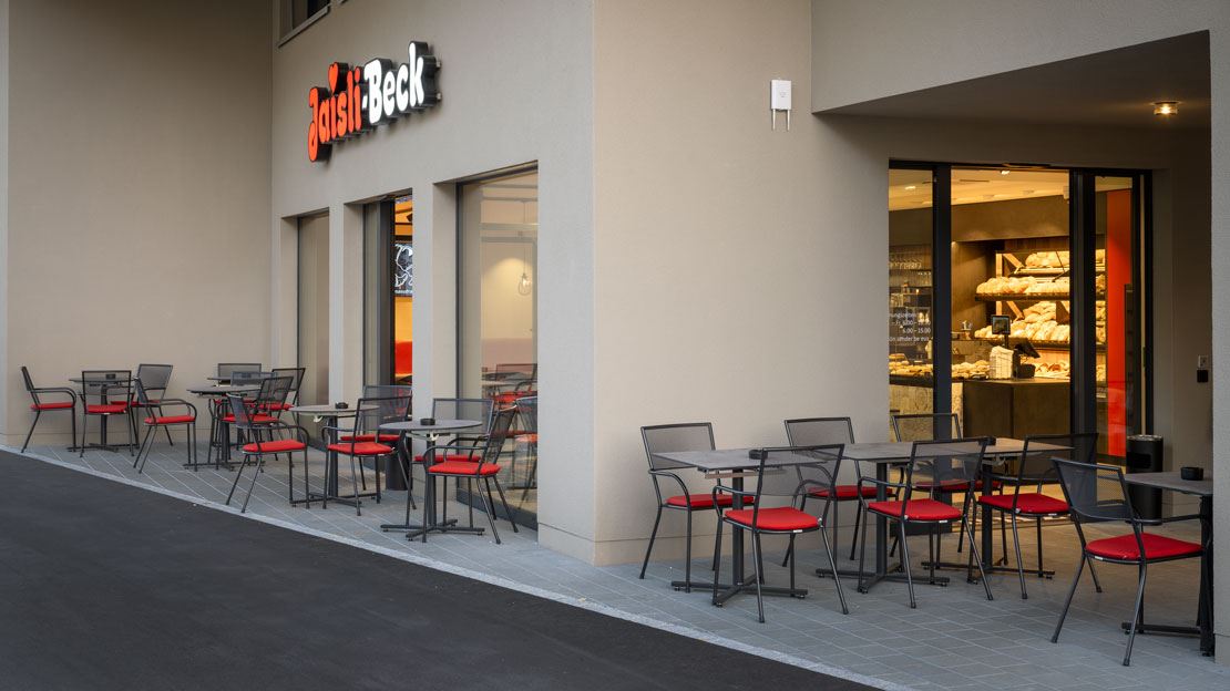 Bei der Jaisli-Beck AG in Hunzenschwil trifft traditionelles Bäckerhandwerk auf eine einladende Atmosphäre im Aussenbereich. Die gemütliche Terrasse lädt dazu ein, frische Backwaren und Kaffeespezialitäten unter freiem Himmel zu geniessen. Die charmanten PETIT Gartenstühle sowie die klappbaren STOCKHOLM Gartentische schaffen eine flexible und zugleich stilvolle Lösung für den Aussenbereich. Hochwertige Materialien und funktionales Design sorgen für Komfort und Alltagstauglichkeit. Ideal für entspannte Genussmomente vom Frühstück bis zur Nachmittagskaffee-Pause.