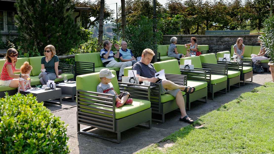 Das beliebte Park Café Kleine Schanze in Bern bietet seinen Gästen eine einzigartige Kombination aus urbaner Ruhe und entspannter Genusskultur. Der Aussenbereich lädt dazu ein, die besondere Lage im Grünen zu geniessen und sich eine Auszeit vom Stadtleben zu nehmen. Ausgestattet mit der eleganten MIAMI Aluminium Gartenlounge sowie den stilvollen REBECCA Gartenstühlen entsteht ein harmonisches Zusammenspiel aus Komfort, Funktionalität und modernem Design. Die hochwertige Möblierung schafft eine einladende Atmosphäre. Ideal für entspannte Stunden mit Blick auf die Parkanlage.