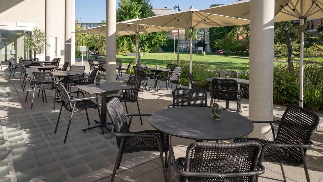 Die Universitätsklinik Balgrist in Zürich bietet ihren Patientinnen, Patienten und Mitarbeitenden nicht nur modernste medizinische Versorgung, sondern auch ein durchdachtes Aussenambiente zum Entspannen und Auftanken. Die Terrassenbereiche sind ausgestattet mit komfortablen PALMA Garten- und Bartstühlen, den vielseitigen STOCKHOLM Gartentischen und SCHILTHORN Bartischen, sowie der gemütlichen KAPSTADT Lounge. Ergänzt werden die Sitzbereiche durch die eleganten FORTELLO & FORTERO Sonnenschirme, die angenehmen Schatten spenden. Hochwertige Materialien, durchdachtes Design und flexible Lösungen sorgen für Komfort, Langlebigkeit und einladende Aufenthaltsqualität.