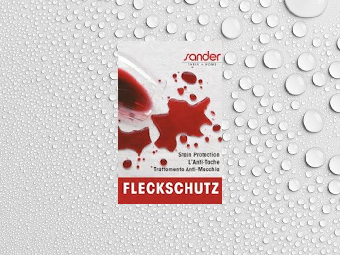 Wer bei Stoff-Tischwäsche in erster Linie an den zusätzlichen Pflegeaufwand denkt, ist mit Tischwäsche von Sander richtig bedient. Dank des bewährten «Sander Fleckschutzes» ist die Tischwäsche besonders pflegeleicht und zudem nahezu bügelfrei. Der Fleckschutz von Sander ist eine effektive und haltbare Textilveredelung. Durch ein technisches Verfahren besitzt der Stoff eine flüssigkeitsabweisende Eigenschaft. Substanzen dringen so gar nicht erst in das Gewebe ein, sondern perlen sofort ab. Mit einem Küchentuch abgetupft kann Schmutz erst gar nicht ins Innere der Faser dringen und Flecken werden verhindert. Zudem sind alle Produkte aus der Serie LOFT bei 60 Grad mit handelsüblichem Waschmittel waschbar.