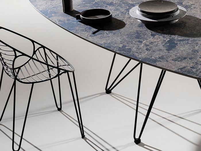 Diesen Gartentisch gibt es in diversen Grössen und Ausführungsvarianten. Mit einer stattlichen Maximalgrösse von fünf Metern Länge wird er zum Hingucker auf der Terrasse. Das Tischgestell ist aus pulverbeschichtetem Edelstahl in schwarz verarbeitet. Die Tischplatte aus Keramik 13 mm mit leicht angeschliffenen Kanten ist wahlweise mit einem Dekordesign in Marmor weiss, Marmor marone oder dunkelgrau erhältlich. Praktisches Zubehör wie eine Ansteckplatte aus Buche oder Rechaud Wärmeplatten aus Keramik runden diese stilvolle Produktelinie ab.