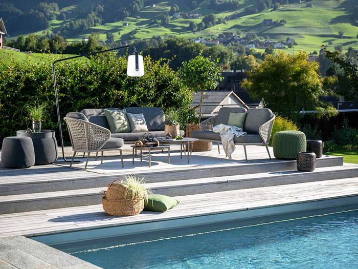 Neu interpretierte Polyrattangeflechte und moderne Rope-Designs sorgen für Leichtigkeit, Struktur und hohe Wohnlichkeit. -