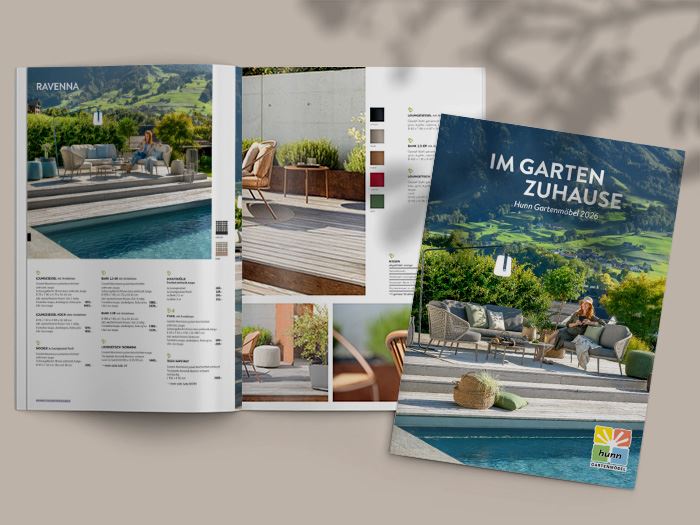 Blättern Sie durch den aktuellen Katalog von Hunn und lassen Sie sich für Ihren Aussenbereich inspirieren oder bestellen Sie ihn kostenlos in gedruckter Form zu sich nach Hause.