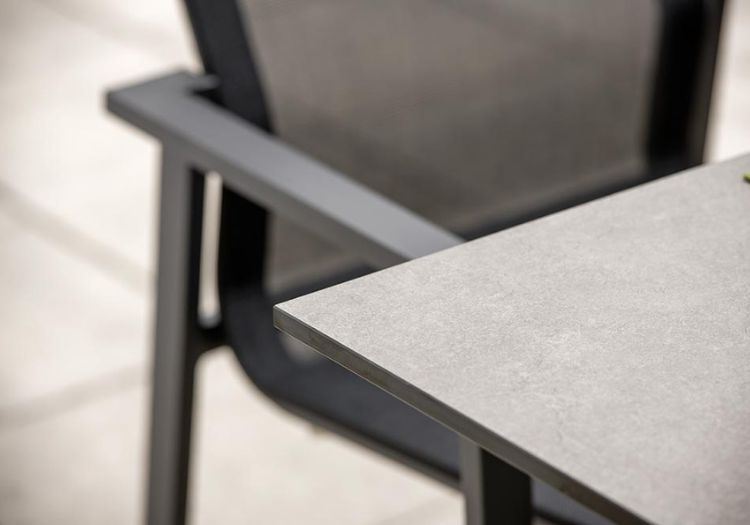 HPL steht für High Pressure Laminate. Zur Herstellung werden mehrere Papierschichten in Harz getränkt. Die Schichtstoffplatten werden mehrere Tage unter hydraulischem Druck (5-9 MPa) gepresst und auf Temperaturen von über 120°C aufgeheizt. Die Wärme bewirkt den Fliessprozess der Melamin- und Phenolharze. Die verflüssigten Harze werden unter hohem Druck zwischen und in die Cellulosefasern gepresst, was zu einer Erhöhung der Dichte und zu einer glatten und geschlossenen Oberfläche führt. Modernes Dekordesign und verschiedene Oberflächenstrukturen machen HPL-Schichtstoffe neben ihren überzeugenden, ökologischen und mechanischen Eigenschaften zu einem hochwertigen Werkstoff für Gartenmöbel. Frost, UV-Strahlung, Regen oder mechanische Belastungen können dem pflegeleichten Material wenig anhaben. Verschmutzungen können Sie mit einer leichten Seifenlauge oder HPL Pflegemitteln problemlos entfernen.