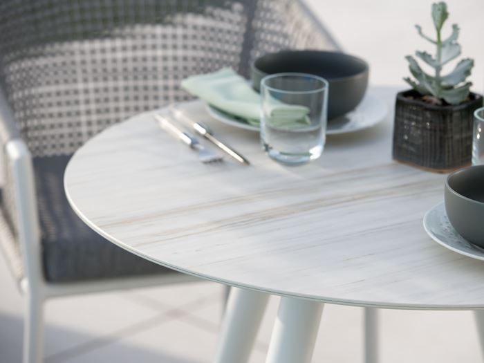 Die Keramikplatte besitzt eine hohe Bruchfestigkeit, ist jedoch an den Kanten und Ecken empfindlich. So können bei Schlägen mit oder gegen harte Gegenstände (z.B. Glasflaschen, Aschenbecher etc.) Absplitterungen auftreten. Weiter sollten Sie Keramik Tischplatten nie direkt an der Platte anheben und bewegen, um Rissbildungen in der Plattenmitte zu vermeiden. Wir empfehlen, den Gartentisch immer am Gestell oder an den vorgefertigten Halterungen anzuheben. Die genannten Beschädigungen stellen keinen Reklamationsgrund dar.