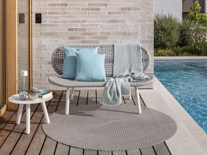 Teppiche: Ein Outdoor-Teppich verleiht Ihrem Aussenbereich Wärme und Gemütlichkeit. Entscheiden Sie sich für strapazierfähige Materialien und neutrale Farben für eine ansprechende Optik.