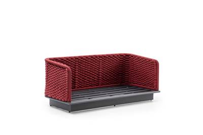 2er Loungebank Aluminium Geflecht gepolstert rot, inkl. Loungekissen Lopi sand, Ausführung EverDry