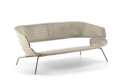 2er Loungebank Edelstahl Geflecht stone beige, inkl. Loungekissen Play melange sand