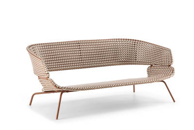 2er Loungebank Edelstahl Geflecht urban terracotta, inkl. Loungekissen Play melange sand
