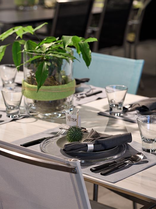 In Bremgarten erwartet Sie eine Gartenmöbel-Ausstellung der besonderen Art. Alle Gartenmöbel von Hunn sind umgeben von immer wechselnden floristischen Meisterwerken. Das hauseigene Dekorationsteam kreiert täglich natürliche und saisonale Dekorationen, um diese passend auf den Gartenmöbeln zu arrangieren.